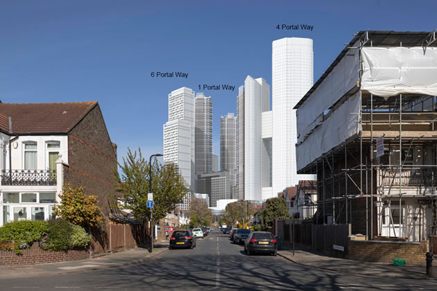 Visualisation of the developments from Eastfields Road. Picture: Pilbrow and Partners