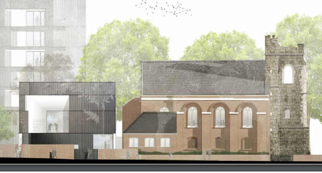 The south side of St Lawrence’s Church will still open out onto new community gardens but Ballymore are now proposing to preserve and restore the Church and increase the range of uses to which it could be put. Options include a nursery or café and restaurant, workspace or other creative use. They are not seeking approval to use the Church for any residential purpose.