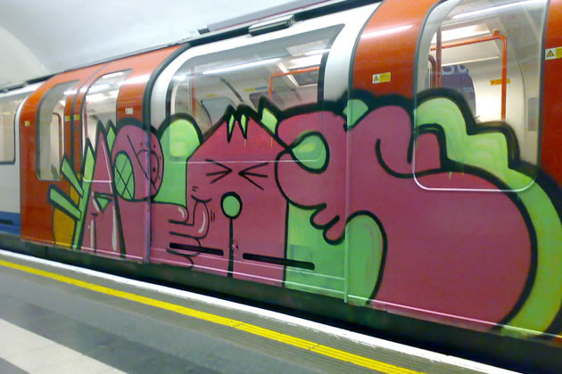Example of graffiti on a London Underground train. Picture: Chris Mear