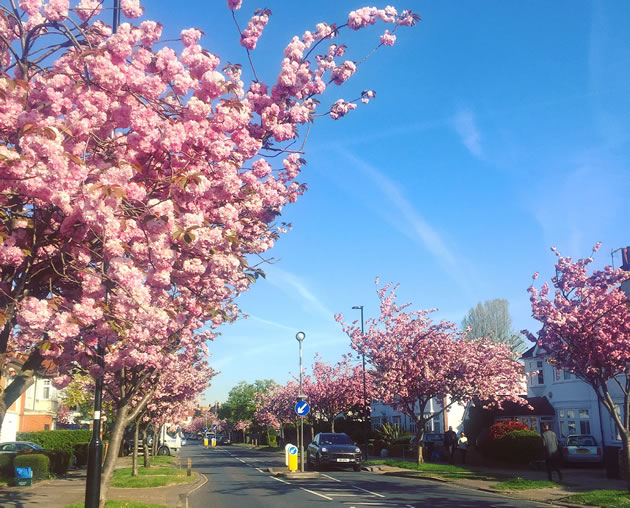 Staveley Road in Chiswick is blessed with a beautiful avenue of 91 cherry trees. These were planted in 1932 soon after the houses were built and the glorious pink spring blossom has given joy to successive generations.