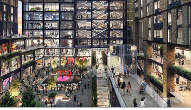 There will be four main buildings in the mixed use development - the Technology Showcase, the Residential, the Retail and Hotel, are all centred around a central plaza dubbed Hudson Square.