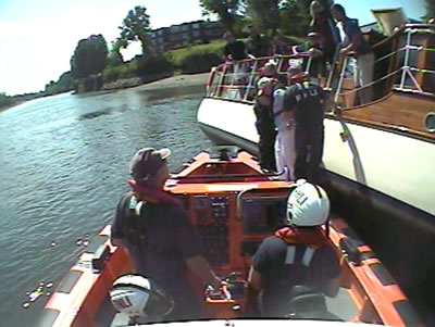 Chiswick RNLI crews have reached the milestone of 1,000 people rescued since the start of the RNLI search and rescue service on the Thames in January 2002. The classic motor launch Wairakei II (one of the Dunkirk Little Ships) had run aground at Brentford yesterday (Sunday, May 27th). Five adults, two children and 2 dogs were evacuated safely into the Lifeboat.