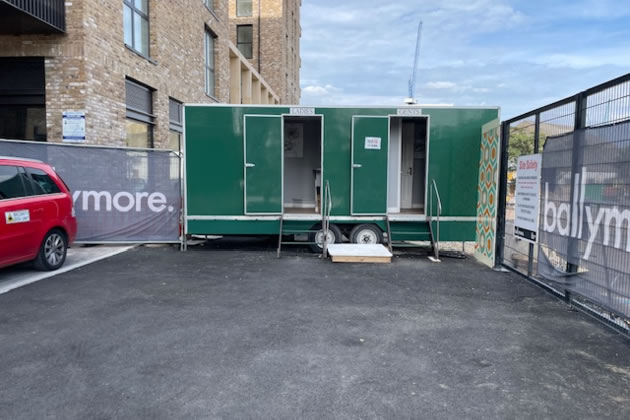 Meanwhile, at Brentford’s open-air cinema, this is what has been provided for film-goers (and passers-by … of course I gave them a test run; they were spotlessly clean and upmarket).