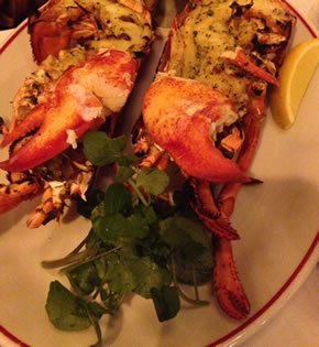 For my main course I chose the Chargrilled Lobster. I did not want the full American experience of bibs and cracking acoutrements, so I asked for all this to be done in the kitchen. Being a friendly and customer oriented place, they duly obliged. The lobster was a decent size, simply served with a little bowl of smoked butter and shoestring chips. The sweet meat was complemented by the smokiness of the butter and there was a slice of lemon which gave the watercress a fresh zing.. I really enjoyed the lobster and thought it was very good value at £24.95 considering the size of the portion. We shared a mixed tomato salad as a side dish.