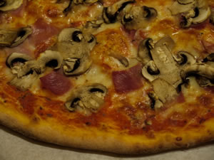 I was a bit surprised that the ham on the prosciutto cotto & funghi pizza was diced. I’ve become accustomed to sheets of ham on my pizza but the Oregano pizza proved that, although it might not look as sophisticated, it does cook more evenly when everything is about the same size. This is the pizza that’s more commonly called a La Reine or, in Germany, a Cardinale. (My first great, and lasting for a lifetime, pizza experience was in Italy but staying at a German run campsite. Fabulous weather, pizza cardinale perfection AND sparkling shower blocks!)