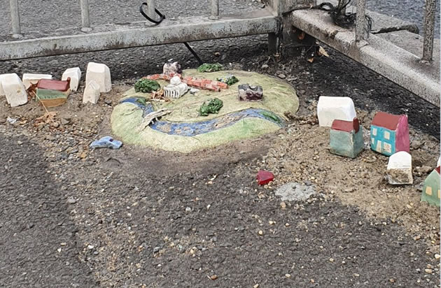 One person who contacted us about them observed, "A lot of care and attention has gone into this and it would have taken time and effort to create them. They must have been done over night. I hope they are allowed to remain because they are set to become a talking point. As for who is responsible, it would have to be a ceramicist who lives locally with anarchist tendencies but that still leaves us with a huge pool of suspects as its Chiswick we are talking about here. "