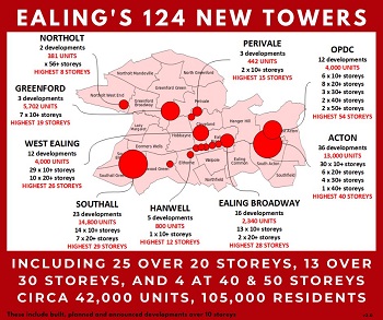 The 'Stop The Towers' movement was originally focussed on the planned high-rise blocks for Hastings and Manor Road in West Ealing, however it has now grown to take in the whole borough.