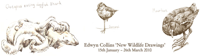 This series of drawings, called New Wildlife Drawings illustrates the journey Edwyn has taken over the past few years as he has slowly fought back his way back to health. He has now returned to performing and his wife, Grave Maxwell has written a book about his recovery called Falling and Laughing.
