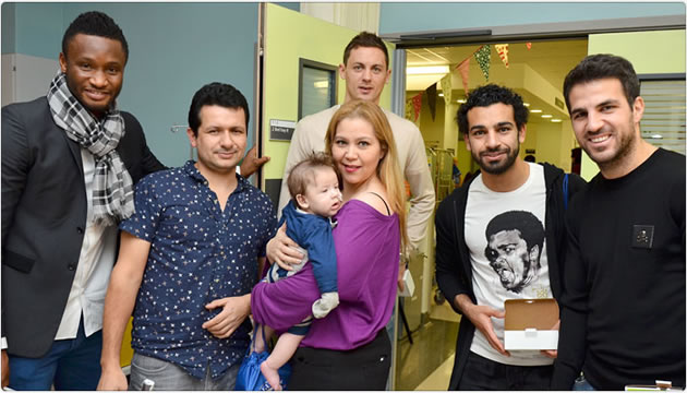 The football stars including club captain John Terry, top scorer Diego Costa and World Cup winner Andre Schurrle brought presents and merchandise for children and spent time talking and taking photos with patients and their families on December 9.