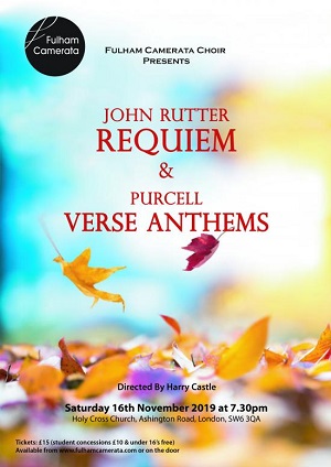 Fulham Camerata, a locally based amateur chamber choir, are presenting music by two great English composers at Holy Cross Church in Parsons Green on Saturday 16 November.