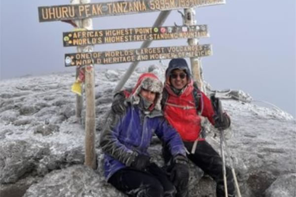 Moin and Zac Mohamed at the top of Mount Kilimanjaro