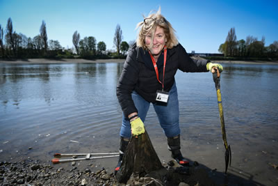 Fulham neighbour and co-founder of Putney Tidy Towpath, Sandi Bloomfield, pictured above tackling the litter, joined the clean-up team "to see how the Fulham foreshore differed on the other side of our stretch of the river".