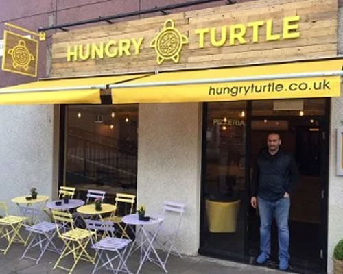 The Hungry Turtle was opened in August 2017 by Bechara Aoun, aiming to provide authentic Neapolitan style pizzas at a reasonable price in small premises in Walham Court, opposite Fulham Broadway shopping centre.