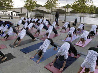 40 people who share a passion for yoga gathered to roll out their yoga mats by Putney Bridge on Sunday 14th October