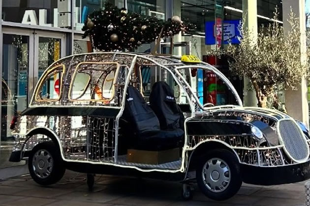 The cab is among the shopping centre decorations designed and installed by Christmas light company Field & Lawn, which says it has been illuminating towns, high streets, cities and commercial shopping centres with professional lighting solutions for over a decade.
