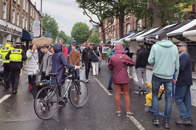 Despite the drizzly weather, local residents turned out in droves on Sunday 15 May to enjoy the first ever Spring Fayre on a blissfully traffic-free Wandsworth Bridge Road.