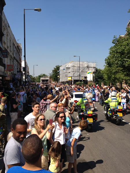 Thousands of enthusiastic people lined Fulham and North End Roads to greet the Olympic Torch as it reached the borough on Thursday July 26 - the eve of the opening of the Olympic Games.