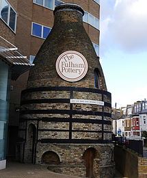 Fulham Pottery was founded by John Dwight in 1672, and became a noted manufacturer of salt glaze pottery. The ony remaining part of the pottery, its kiln still sits close to the house at the junction of Burlington Road and New Kings Road.
