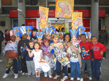 ![]() Children from the White City after-school centre dressed in their carnival costumes outside Hammersmith Town Hall |