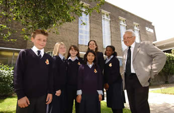 Celebrating the school's latest Ofsted report are (left to right) Burlington Danes students Stuart Retter, 13; Shushauni Broom, 12; Kim Render, 13; Lina-Rose Snaith, 11; Cllr Alexandra Robson, the council's cabinet member for education; student Nadia Bennett, 13, and headteacher Spokey Wheeler.
