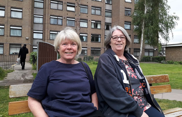 Sally Taylor (Left) and Diana Belshaw (Right) on the West Ken Gibbs Green estate. Photo by Owen Sheppard