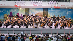 The concert, introduced by the new face of the Proms on TV, Katie Derham, will offer 90 minutes of world-class orchestral music as a pre-season treat for Londoners one week before the BBC Proms opens.