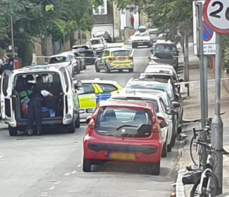 Shortly after 11.10am a man, believed to be in his twenties, entered a south London hospital with a stab wound. He was admitted for treatment. His condition has been assessed as non-life threatening. Police have arrested him on suspicion of grievous bodily harm. It is not known whether he is the man reported to have been injured in the Burston Road attack.