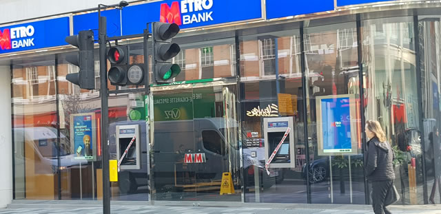 It has been a bad week for Metro Bank as the following day burglars smashed a Land Rover through the glass front of the Chelsea branch.