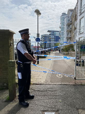 A cordon was set up around Prospect Quay as forensic officers went over the scene. A dog unit was also called to help with the investigation