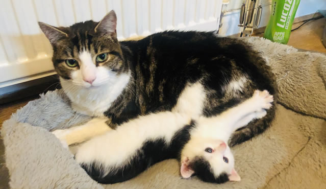 Jess has taken three sets of needy kittens home with her to handrear them and each time Joey has become very fond of them. “He has got along with all of them,” she explained. “I knew he would, as he’s still young himself and has been around other animals as I have an older cat and a dog but he just loves having the kittens to play with. Not only that but he also grooms them and cleans their bums like a mother cat would. He helps the kittens socialise with other animals - he’s just an absolute star with them.”