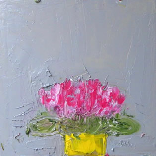 Her paintings are all oil, it is her use of colour that is so inventive and enticing. She paints flowers, abstracts, cityscapes and still life in this show.