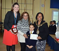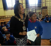 Mayor Mercy presents pupils with prizes for outstanding designs
