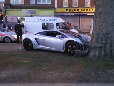 A Lamborghini had more than a close shave with a tree yesterday, Sunday 7th March, on Shepherd's Bush Green.
