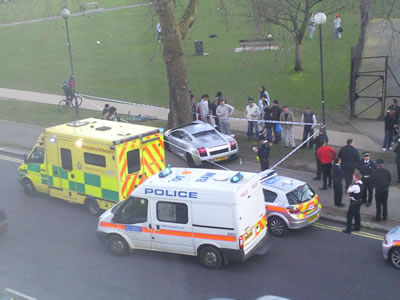 Sports car crashes into tree on Shepherd's Bush Green