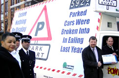 Public awareness is key to Ealing Council and Ealing Police's joint blitz on vehicle crime. The campaign continues this week with a five week tour, starting Monday 1st March, of the borough by the Park Smart mobile billboard.