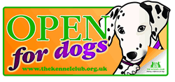 The Kennel Club has created campaign stickers which are freely available to all businesses which allow dogs. Places which display this campaign sticker ‘Open for Dogs’ and allow dogs, will benefit from encouraging more visitors and their dogs. Contrary to popular belief, it is not illegal to take dogs into restaurants and pubs etc.