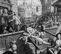 The artist’s depiction of the drunkenness and debauchery in Gin Alley also did little damage to the industry with distilling and sales of the spirit said to have taken place in as many as one in four buildings in some parts of London.
