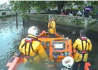 RNLI Helmsman Garry Tiller commented “Whilst others were aiding the casualty when the Lifeboat arrived, they were not able to remove him from the water as he was at the base of a wall and they were at least 2 metres above him. He was very cold and tired having been in the water for around 30 minutes, and was beginning to panic. He could only have held on for a short while longer and would then have been swept away. The only other vessels in the area were single sculling boats and one coaching vessel none of which would have had the stability or capacity to effect the rescue.”