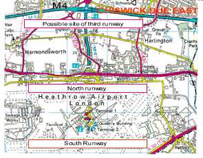 Some commentators have pointed out that this may not be all bad news for people in this area. One pointed out that the third runway will be shorter and catering for smaller planes. They claim this will mean that if there is a new flight path over Brentford, Chiswick, Acton and Hammersmith it will mean that large planes such as jumbo jets will not be able to use it and a third runway may actually reduce noise If you are concerned about the possibility of a third runway at Heathrow they can write to Mike Fawcett, Aviation Division, DETR, 72 Marsham St,SW1, with a copy to the Aviation Minister, David Jamieson, Eland House, Bressenden Place, SW1. The contact details for local MPs are in the local government section of this site.