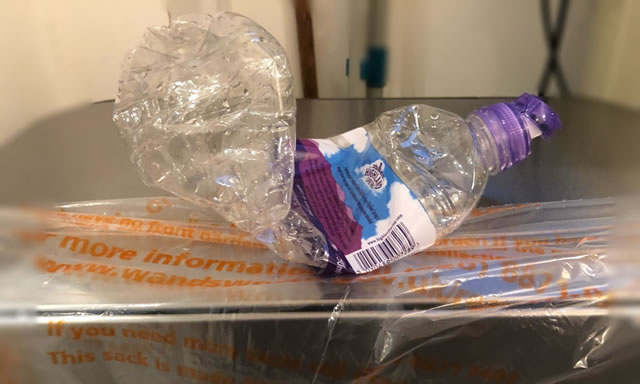 Residents recycling plastic bottles must squash the bottle before putting it in the recycling bag or bank