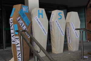 Ealing Trade Union Council Secretary Eve Turner said "Our street theatre has been yet another imaginative way to ram home the message that we need our hospitals and we need our Health Service. Selling off services to the lowest bidder will just lead to cuts and poor quality care. When will the Health Minister listen to the voice of the people?"