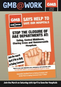 The 'Save our Hospitals' public protest will gather in both Acton and Southall before marching to Ealing Common where a major rally will take place Saturday 27th April.