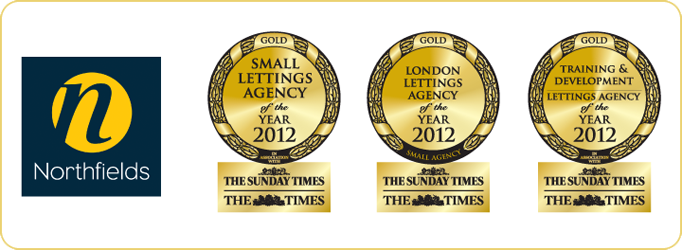 Northfields were delighted to receive the three golds: Best Small Lettings Agency, Best London Lettings Agency & Training & Development Lettings Agency of The Year 2012.