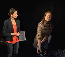 Bit by bit the man's memory returns, his name is Carl (Fed Zanni)with a wife and two children. Using some barely legal research, Angela finds out where he used to live, and sets about tracing his wife Helen, nicely played by Katrina Cooke, shabbily dressed and unmade up in stark contrast to the glamorous Angela. Helen has doubts about the whole project but with a bit of bribery and smooth TV flattery Angela gets her way.