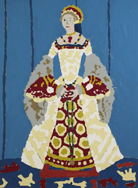 Kirsty Buchanan’s films are based on her series of Headless Queen Zines. Rachael Haines creates a gaffa-taped, ‘magpie’ Tudoresque interior. Sigrid Holmwood’s drawings play with the concept of ‘intern’ in the contemporary art world and ‘apprentice’ of Tudor times, contributing to her investigative painting practice that includes re-enactments with The Tudor Group.