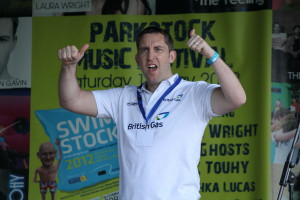 Gold medalist, Rebecca Adlington, currently in training for the Olympics, sent a recorded message of support for Swimstock. She said she was sorry she couldn't be there but wished everyone a great day.
