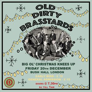 Then on Friday 20 December at 7.30pm, Bush Hall is hosting its anual Christmas Knees up with the amazing ten piece brass band Old Dirty Brasstards.