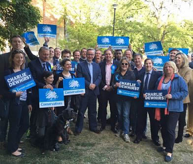 Charlie Dewhirst and team out campaigning this week with the support of Michael Gove