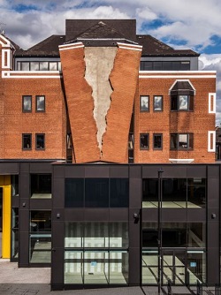 However, it turn out there is no need to panic - the split on the facade of the development, on the site of the former Harper Collins HQ at 77 Fulham Palace Road, is actually the latest permanent artwork from artistAlex Chinneck.