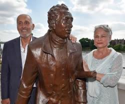 The statue with sculptor Laury Dizengremel and the Hammersmith Society's Richard Jackson